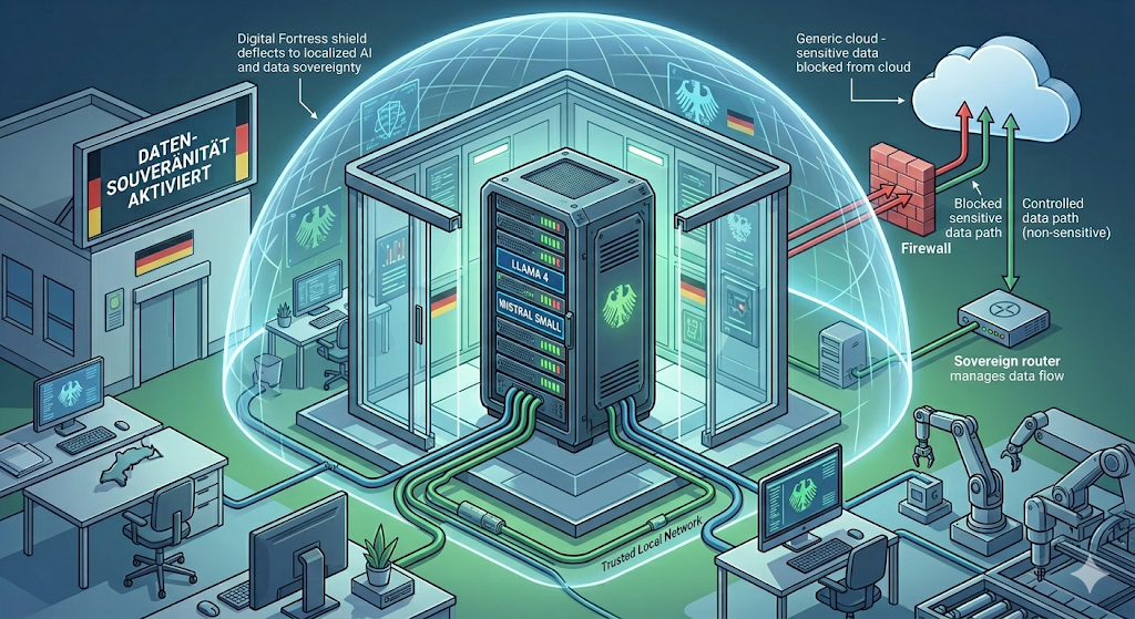 - The Sovereign Router (Open Source): A custom middleware that acts as a “Data Air-Lock,” scanning incoming prompts for German keywords (e.g., Personalakte, Geheim).